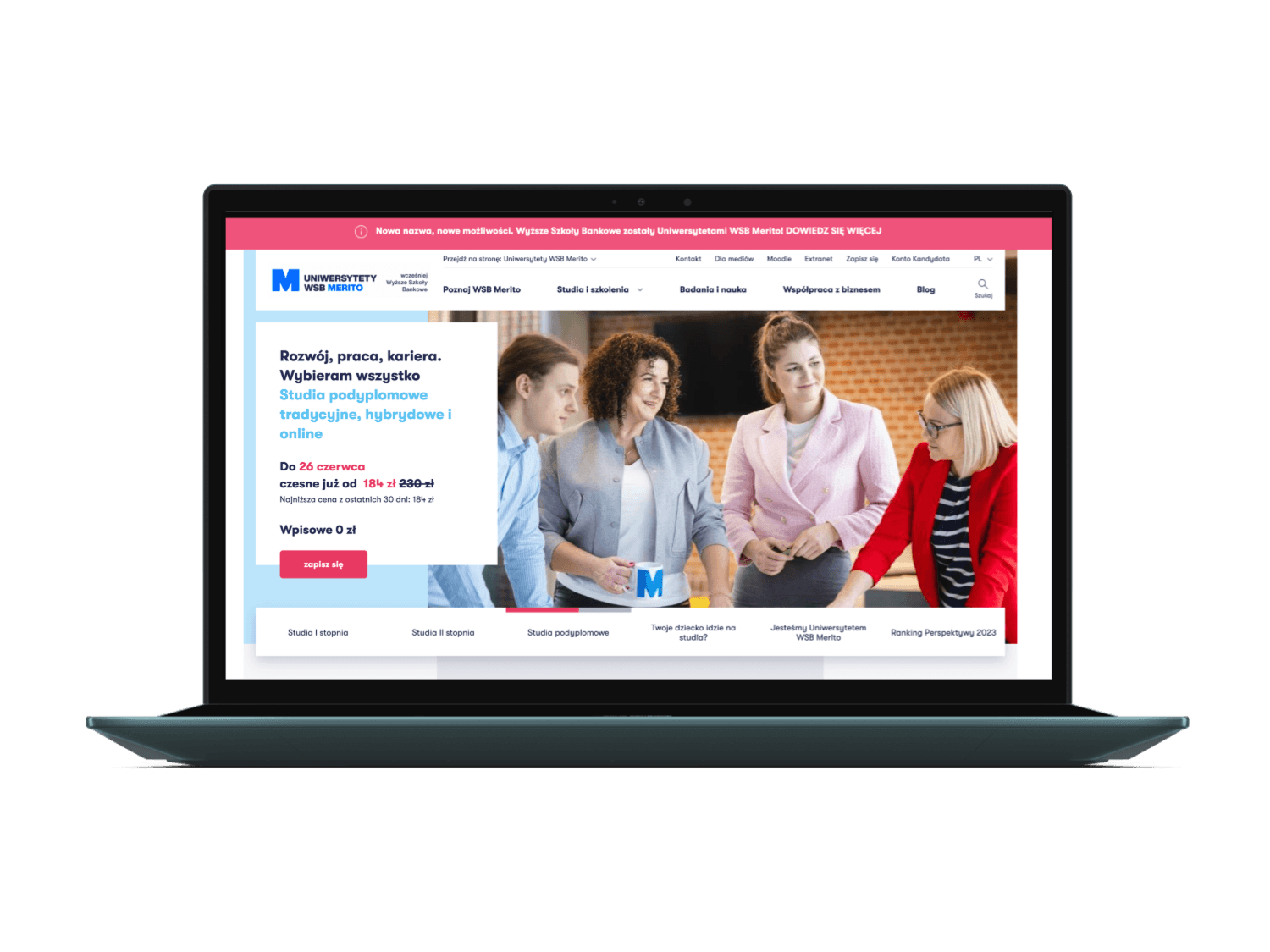WSB Merito University aimed to redesign its digital platforms to create a more inclusive and user-friendly experience for both local and foreign students. The challenge was to ensure accessibility, usability, and engagement across different linguistic and cultural backgrounds while integrating best practices in UX/UI research and user-centered design.
