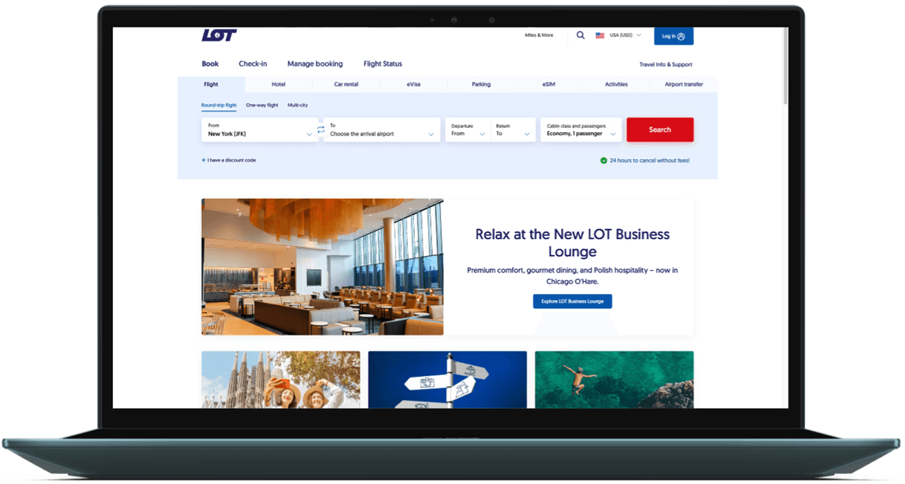 LOT’s expansion into the U.S. market required better understanding of how American users interpret airline content, make booking decisions, and perceive foreign brands. The research aimed to uncover potential barriers and identify adjustments needed to improve communication and usability.